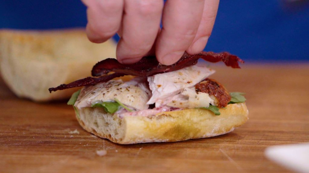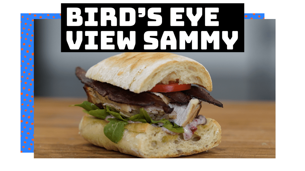 When you’re on an adventure, you need a sandwich that will travel well, and fuel you right – plenty of bright flavor, and a bite that eats well served cold (which is usually the way to serve revenge, but a good sandwich, too). A nice, juicy, roasted turkey breast nestles up just right against some creamy taleggio cheese, a bright, tangy cranberry mayo and fresh tomatoes on a nice, grilled ciabatta bread and some peppery arugula gives you a texture mix and mouthfeel that is only outshone by the great flavors that really compliment each other – like sunshine someone’s beautiful hair on a picnic, our the mist from a secret waterfall. You want to have a sammy that’s as memorable as the place you’ve taken some risks to get to, but this sandwich isn’t risky, guaranteed to be great rain or shine, and at any elevation.