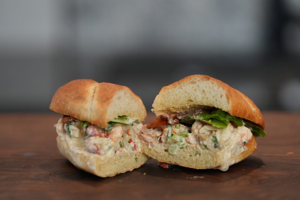 We love to have a monster time, and grew up with them giant Kaiju, like Godzilla… We lived right down the street from him and his sister, Godesszilla. Nah, just playing, we grew up watchin’ ‘em and loving ‘em. You know the funk squad likes to get a little crazy sometimes, and this fish is cray (though it isn’t actually a fish, it’s a crustacean, but we love the name anyways). When you’re doing high adventure, or just chillin’, a cold sammy that travels well really can take you places, if you take ‘em along, that is. If you picture the classic New England style lobster roll, this is more of a Japanese-inspired version, using the fancy lobster’s cool, punk rock cousin, the crawfish. With bacon, and a sweet, tangy dressing, it captures the feeling of a chill day floating down the river or a celebratory sandwich from a big paddle. If you can’t get your claws on any crawfish, you can use shrimp, langostinos or crab, or save some budget by using imitation crab, too. No shame in that. Be proud of your sandwich game, and it starts here.