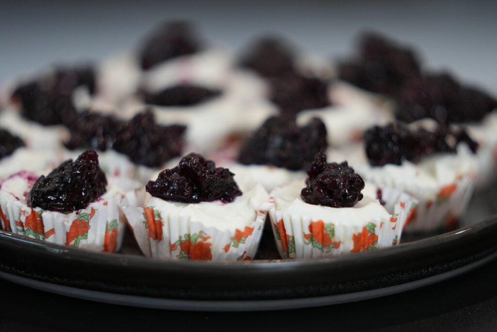 To fully rep the great city of New York, and Strong Island, er, we mean Long Island, we got the perfect sweet treat for tour racing party The final jewel in racing’s triple crown is the Belmont Stakes, and to represent the third leg of the biggest races, we’ve got mini–New York-style cheesecakes. Easy to eat and even easier to make, they’re nice little bites so you don’t get too weighed down (you’ll notice all of our recipes for a horse racing party are bite-sized, that way you can nosh and pick and choose what you want, just like a racing form at the track). We learned these through trial and error, and they always come out creamy and heavenly. We make a blueberry honey compote to drop off on top, and the sweet berries, fatty cream cheese and honey make this dessert a winner no matter the location or the weather.