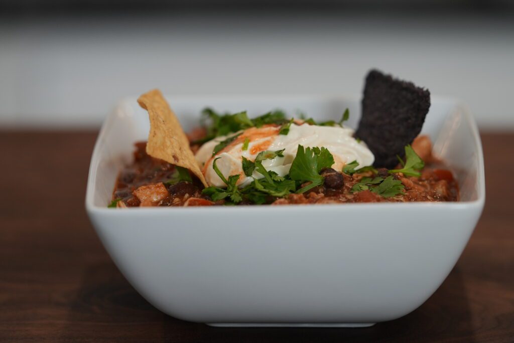 One of the mainstays of an office? The conference room. Sometimes fun, other times deadly (many a job has been lost in one of these places). One of the mainstays of the office party? Chili, baby. And we’ve got a dynamite chicken version, which is great to have in your skill set. This dish is great for a lot of people, and if you’ve got some people in the office who don’t eat beef or pork, it still pleases everyone (like your office closing early, or that pain in the ass from accounting putting in their two week notice). The flavor here brings some brightness, tang and that chili goodness that can be made in advance of your company pig-out day. Served with white corn chips, fresh diced red onion for crunch and a little garlic sour cream, this chili takes your party to the next level. After all, we’re creative problem solvers and trouble makers, and this dish is the best kind of trouble. It’s what we call one of those “good problems."
