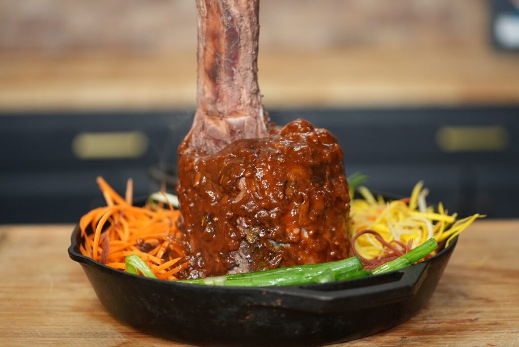 One of our favorite sounds and smells of a great tailgate? A flat top grill, really great meat sizzling, people talkin’, music playin’ and the crowd just buzzin’. A sandwich that always makes us happy is a great Philly cheesesteak, and with respect to that, we invented a take on it that’s a little unique and brings a lot of flavor firepower and is downright fun to make. The perfect sandwich to have a beer or two while whippin’ it up. What makes it Buffalo? A few things, but the first is the Kummelweck sub roll. The famed Kummelweck roll is usually round, and celebrated for the seasoning mixture on top. All we did was have some baker friends make the same thing into a sub roll shape. We throw some choice shaved prime rib onto the hot flat top, and we caramelize some onions to throw on top, with a horsey mayo sauce that just hits different. We melt some sharp cheese and bring this beauty together, like those beauties crashing your tailgate. This sandwich fits perfectly in your hand, just grab it by the laces.