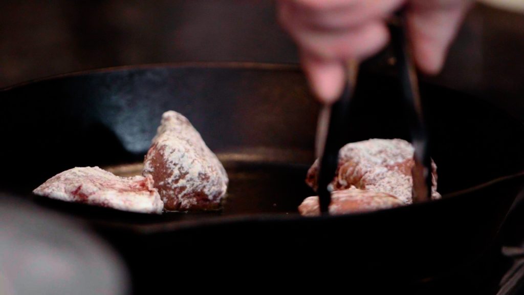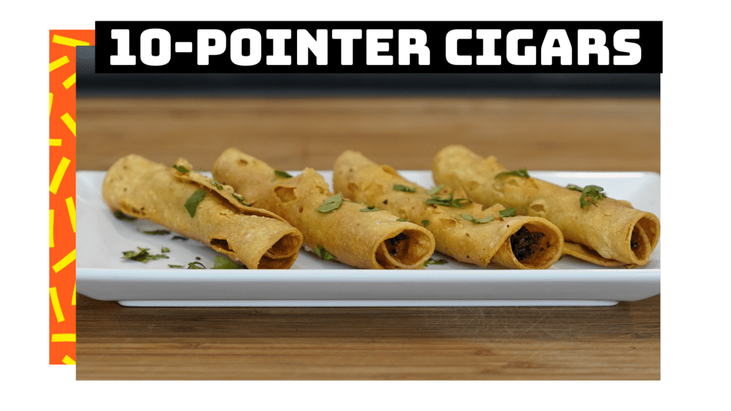 Sometimes in poker, you can get a tough hand, but you can make that work out beautifully if you play your cards right. The same can be said for a great, lean meat like venison, if you’re not careful, it can toughen up on you. We’ve got an ace in the whole, slow braising that deer meat in a great red wine, making it fall apart tenderly. Once we’ve got that mastered, we pair it with some sharp orange cheddar cheese, and roll ‘em into taquitos, perfect handhelds while you’ve got a handful of cards, too. We throw ‘em quick in the fryer and crisp ‘em up, and serve ‘em hot with a smooth, cool avocado cream sauce. No tricks, just treats with a super flavorful bite, balanced, warm, cool, crunchy and juicy, this is basically the royal flush of bites, ya’ll. Easy to make, great for any crowd, whether you’re gamblin’ with cards or playing the odds with a room full of kids, we got you covered. Easy to make, easy to eat and you’ll be on easy street even if you’ve cashed in your last chip. If you can’t get venison, beef chuck roast works just as well with this recipe.