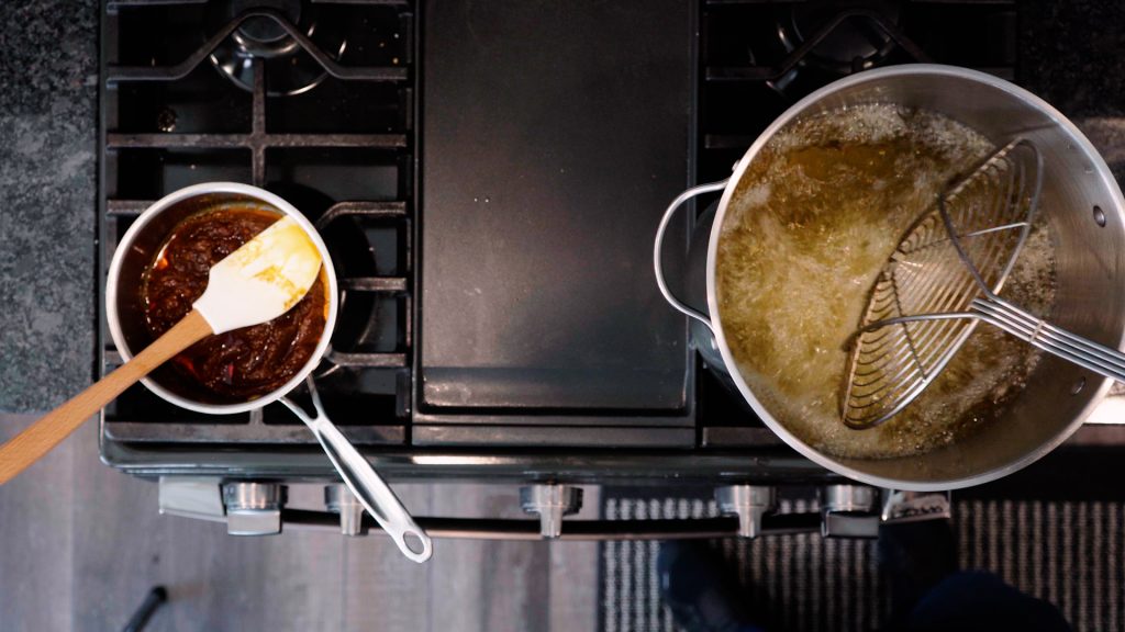 For the executive game, we like to go a little extra, and make some food that makes players feel like they hit the jackpot, even if they’re losing their shirt at the table. We’re huge fans of working with duck, it’s a luxurious, fatty protein that is easy to play with, and can be crispy, juicy and compliments so many flavors, including bourbon, which is featured in our cocktail. They’ll also lose their minds when we start slingin’ these duck wings – fatty, crispy and just plain delicious, with a sweet garlic cajun sauce with just enough heat to bring out all the other flavors. We want to have some foods that people can eat with their hands, and have a little salt that can make them want to drink a bit more too, take more risks. This recipe is named for where we had our Executive Game, a great Speakeasy we love, the Fitz in downtown Syracuse. The type of place and the type of food that makes you feel like an outlaw – sometimes it feels good to be a little bad.